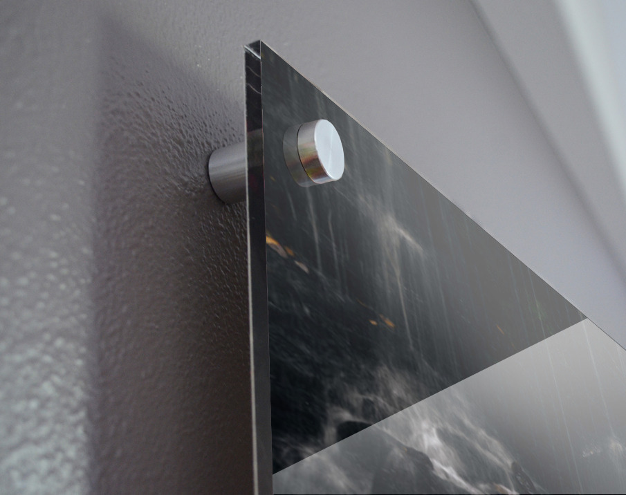 Printed to the edge - Ready to hang - provided with 4 premium polished aluminum stand off ( wall screws and mounting hardware provided )